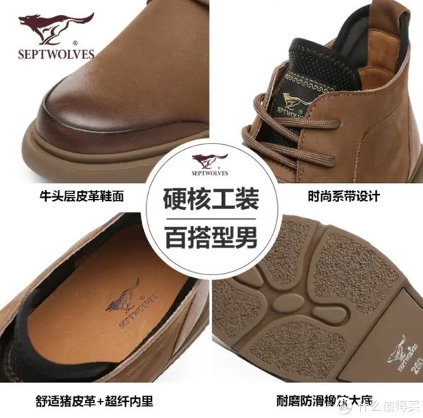 七匹狼的这款工装鞋,透露着些许的商务风。