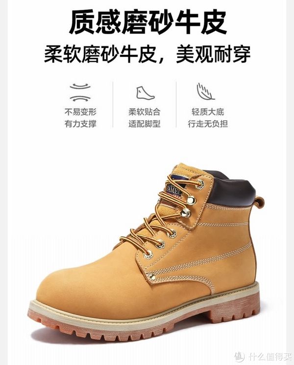 也是典型的土黄色鞋面加橡胶鞋底。外表采用磨砂牛皮。